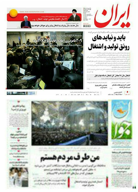 روزنامه «ایران» به سخنان مقام معظم رهبری در جوار حرم مطهر امام رضا(ع) و پیام نوروزی ایشان پرداخته و درهمین راستا نیز به پیام نوروزی رییس جمهور که سال جدید را سال پیشرفت برای ملت عزیز و اشتغال برای جوانان دانسته، اشاره کرده است.