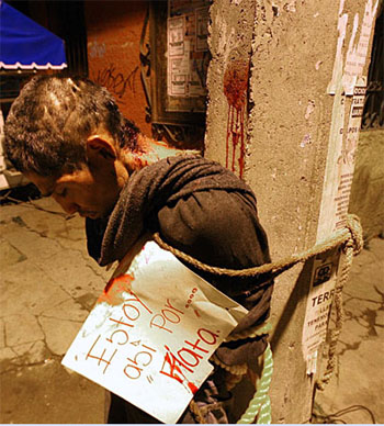 به گزارش عصرايران( asriran.com )، روزنامه یو.اس.اس تودی چاپ آمریکا نوشت: در حال حاضر گروه های مردمی در مکزیک قصد خشکاندن ریشه جرم و جنایت را دارند و بهترین راه از دید آنها، تنبیه خلافکاران در انظار عمومی است.