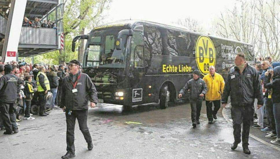 پلیسآلمان اعلام کرد: 3 انفجار در نزدیکی اتوبوس تیم فوتبال "بورسیا دورتموند" روی داد و یک بازیکن زخمی شد.