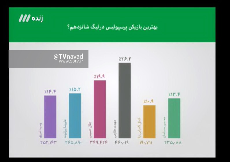بینندگان برنامه نود مهدی طارمی را به عنوان بهترین بازیکن پرسپولیس در سال جاری انتخاب کردند. سوال نظرسنجی برنامه نود این هفته انتخاب بهترین بازیکن پرسپولیس از میان 6 بازیکن بود که در نهایت از میان 1.8 میلیون رایی که پیامک شد 26 درصد مهدی طارمی را انتخاب کردند و 19 درصد جلال حسینی.