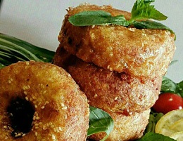 سپس در سفیده تخم مرغ زده شده، می غلتانیم و در روغن داغ سرخ می کنیم.