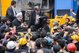 وی در محل حادثه در جمع معدنچیان سخنرانی کرد،  هنگام ترک محل عده‌ای از معدنچیان حاضر مطالبات و دغدغه‌های خود را با رییس جمهور در میان گذاشتند که این مساله به دلیل همزمانی بیان این مطالبه‌ها و پایان سخنرانی رییس جمهور و ترک محل از جانب وی و هیات همراه به صورت طبیعی ازدحامی ایجاد کرد که مخالفان دولت در رسانه‌های خود از آن تعبیر به اعتراض مردم گلستان به رییس جمهور کرده و در قالب فیلم و عکس دانسته یا نادانسته سعی داشتند این مساله را به سراسر استان تعمیم داده و اقدامی در راستای تحریک عمومی در گلستان علیه عالیترین مقام اجرایی کشور ایجاد کنند.