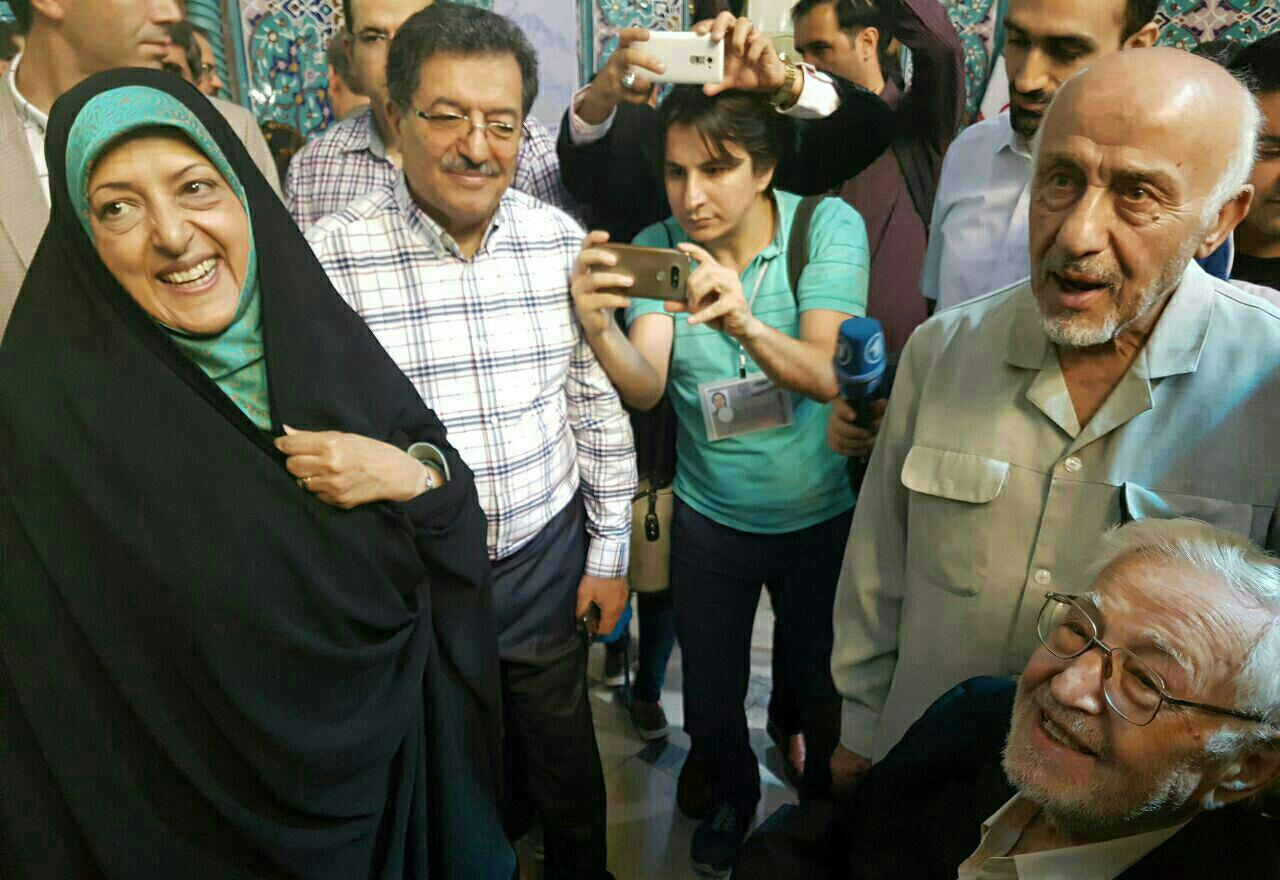 دیدار خانم ابتکار و دکتر یزدی در حسینیه ارشاد پس از اخذ رای