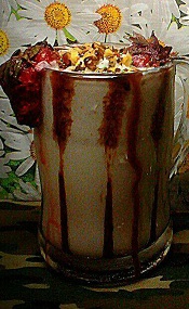 لبه های ليوان را با قاشق كوچک، نوتلا زده و داخل پودر گردو و پسته غلطانده و همين طور كمی داخل ليوان می زنيم.