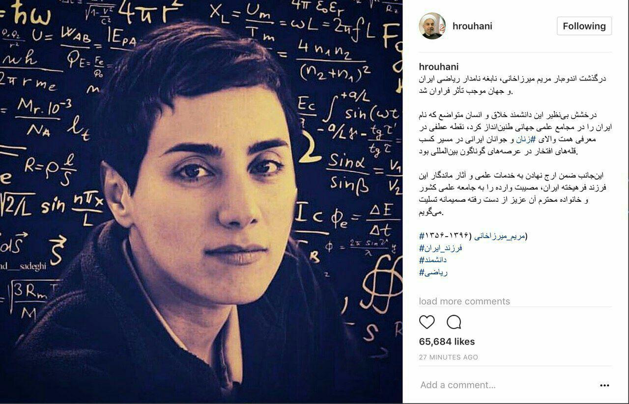 تصویری که از مریم میرزاخانی در اینستاگرام رییس جمهور منتشر شد.
