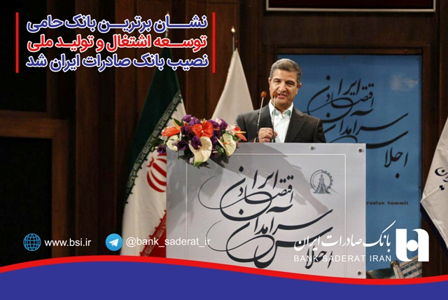 نشان برترین بانک حامی توسعه اشتغال و تولید ملی به بانک صادرات ايران و لوح سپاس و جایزه ملی سرآمدان اقتصاد ایران در صنعت بانکداری به سیاوش زراعتی مدیرعامل این بانک در شانزدهمین اجلاس سرآمدان اقتصاد ایران اهدا شد.