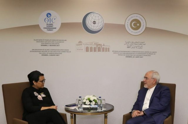 به گزارش ایسنا، محمد جواد ظریف که صبح امروز (سهشنبه) به منظور شرکت در نشست فوق العاده کمیته اجرایی وزرای خارجه سازمان کنفرانس اسلامی وارد استانبول شد در حاشیه این نشست با رتنو مرسودی همتای اندونزیایی خود دیدار و در خصوص روابط دو جانبه و موضوعات منطقهای گفتوگو و تبادل نظر کردند.