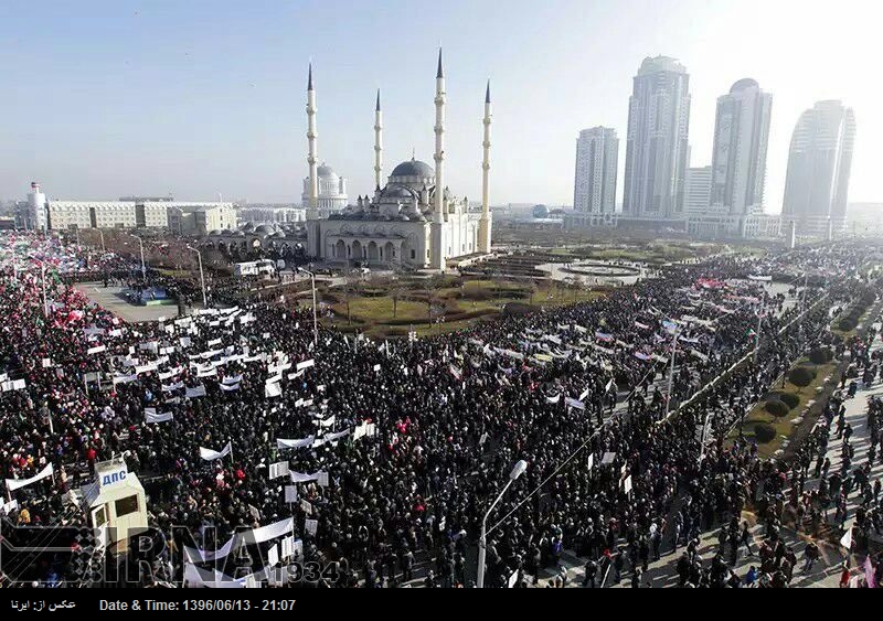 میلیون ها نفر امروز در جمهوری چچن علیه کشتار مسلمانان در میانمار تظاهرات کردند.