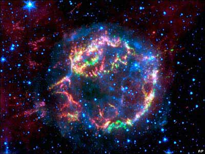 تصويری از بقايای يک ستاره منفجر شده که توسط تلسکوپ فضايی ناسا - اسپيتزر - بدست آمده است