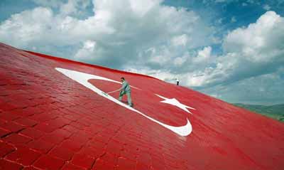 كارگر تركيه اي و كشيدن پرچم