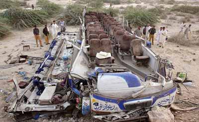 سقوط اتوبوس پاكستاني به دره و مرگ بيش از ده مسافر