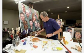 جرج بوش، رئیس جمهور اسبق آمریکا، در حال کشیدن پرتره نظامیانی که در دوره ریاست جمهوری او در عراق و افغانستان مجروح شدند