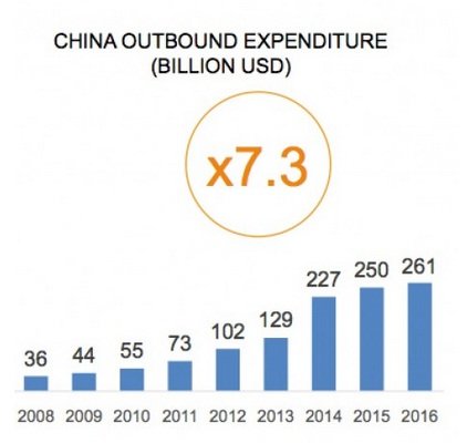 یکی دیگر از آمارهای جالب توجه، میزان هزینهکرد گردشگران چینی در مقاصد خارجی است که از سال ۲۰۰۸ تاکنون +۷۳۰ درصد رشد داشته است.