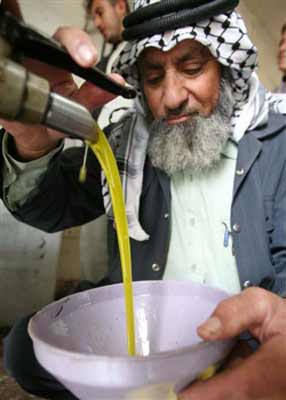 آغاز زمان برداشت زیتون در فلسطین؛ مرد فلسطینی در حال گرفتن روغن زیتون