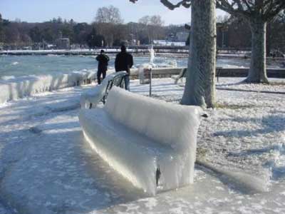 تصوير يك نيمكت يخي در بيبي پلاژ، درياچه لمان در شهر ژنو سوئيس