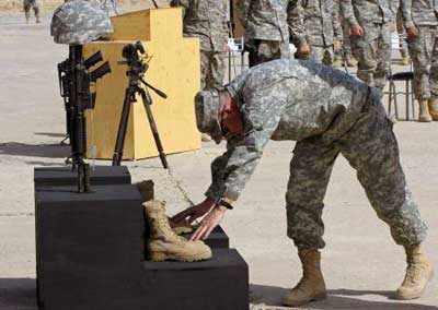 سرباز امريكايي در مراسم يادبود همقطاران مقتولش در سامرا در شمال بغداد