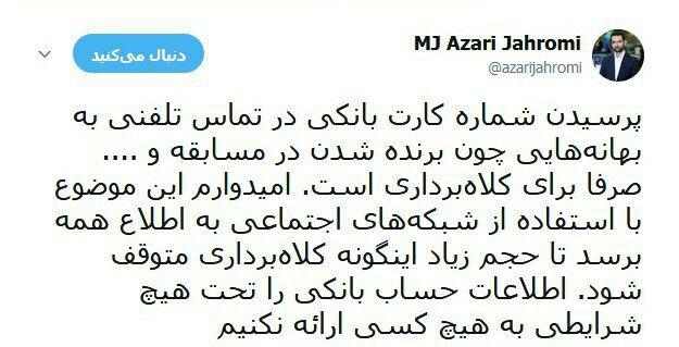 هشدار وزیر ارتباطات به سوء استفاده از اطلاعات حساب های بانکی