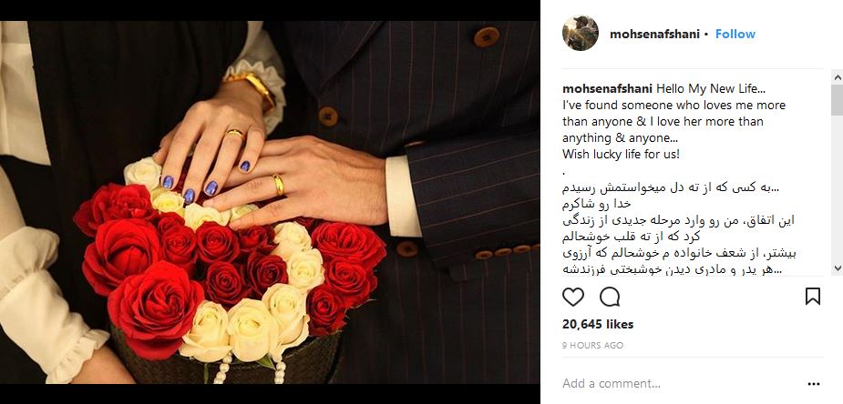 محسن افشانی بازیگر سینما و تلویزیون با انتشار این عکس در اینستاگرامش نوشت: