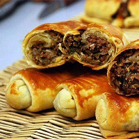 مخلوط مواد میانی را روی یک لبه خمیرها پخش کرده و با دقت رول کنید.