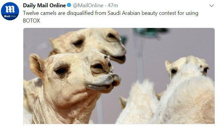 دیلی میل: ۱۲ نفر شتر به دلیل انجام عمل جراحی زیبایی "بوتاکس"، از حضور در مسابقات "شترهای زیبای عربستان" محروم شدند!/
