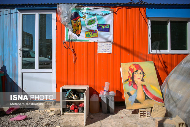 او علاوه بر آموزش نقاشی، روی کانکسها هم با تکنیک آکرولیک نقاشی میکند: «روی یکی از کانکسها عکس علی دایی را کشیدم. روی یک کانکس دیگر هم تصویر جواد خیابانی. میخواستم یکجورهایی زحماتشان را جبران کنم. این دو نفر بعد از زلزله کمکهای زیادی کردند که من خواستم به زبان خودم از آنها تشکر کنم. یک راننده خیرخواه هم بود که با کامیونش برای زلزلهزدگان کمکها را میآورد اما یکبار در تصادفی کشته شد. تصویر او هم روی یک از کانکسهاست. حادثه کشتی سانچی را نیز روی کانکسی دیگر کشیدم.»