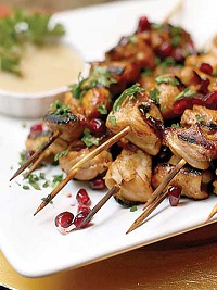 سینه مرغ طعم دار شده را به سیخ بکشید.