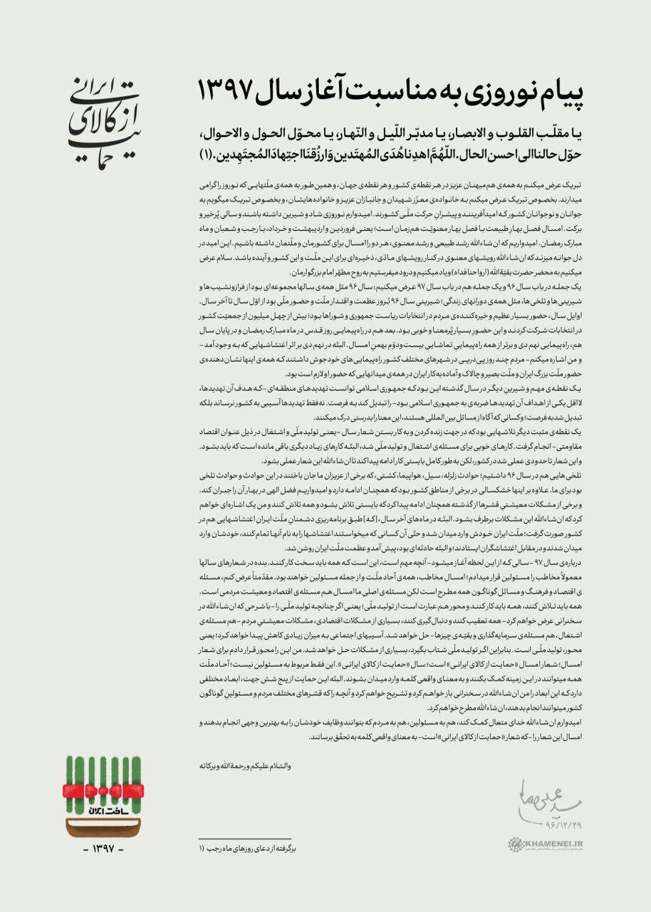 متن پیام نوروزی مقام معظم رهبری به مناسبت آغاز سال 1397