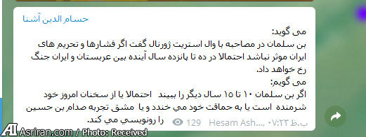 واکنش مشاور حسن روحانی به مصاحبه جدید ولیعهد عربستان