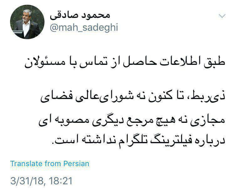 نماینده مجلس: هیچ مرجعی مصوبه ای درباره فیلترینگ تلگرام نداشته
