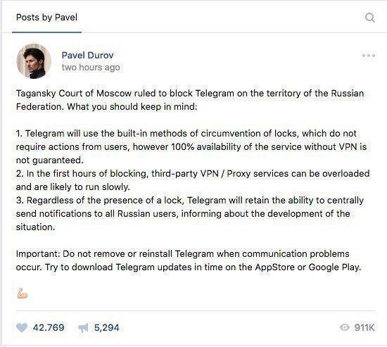 پاول دوروف نوشت: تلگرام از وی‌پی‌ان و فیلترشکن داخل اپ استفاده می‌کند و کاربر نیازی به استفاده از فیلترشکن ندارد .هم‌اکنون در آخرین نسخه این اپ این امکان فراهم شده است.