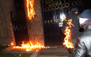 تاسف آور اینجاست که دانشجویان هیجان زده، برای تصرف باغ، نه با ارتش انگلیس که با پلیس ایران درگیر شدند و پس از آسیب رساندن به آنها، وارد این ملک شدند (در یکی از تصاویر، پلیسی به چشم می خورد که بر اثر اصابت کوکتل مولوتف، لباسش آتش گرفته است)