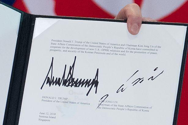 دونالد ترامپ، رئیسجمهور آمریکا و کیم جونگ اون، رهبر کره شمالی اولین دیدار رو در روی خود را ۱۲ ژوئن ۲۰۱۸ در سنگاپور برگزار کردند.