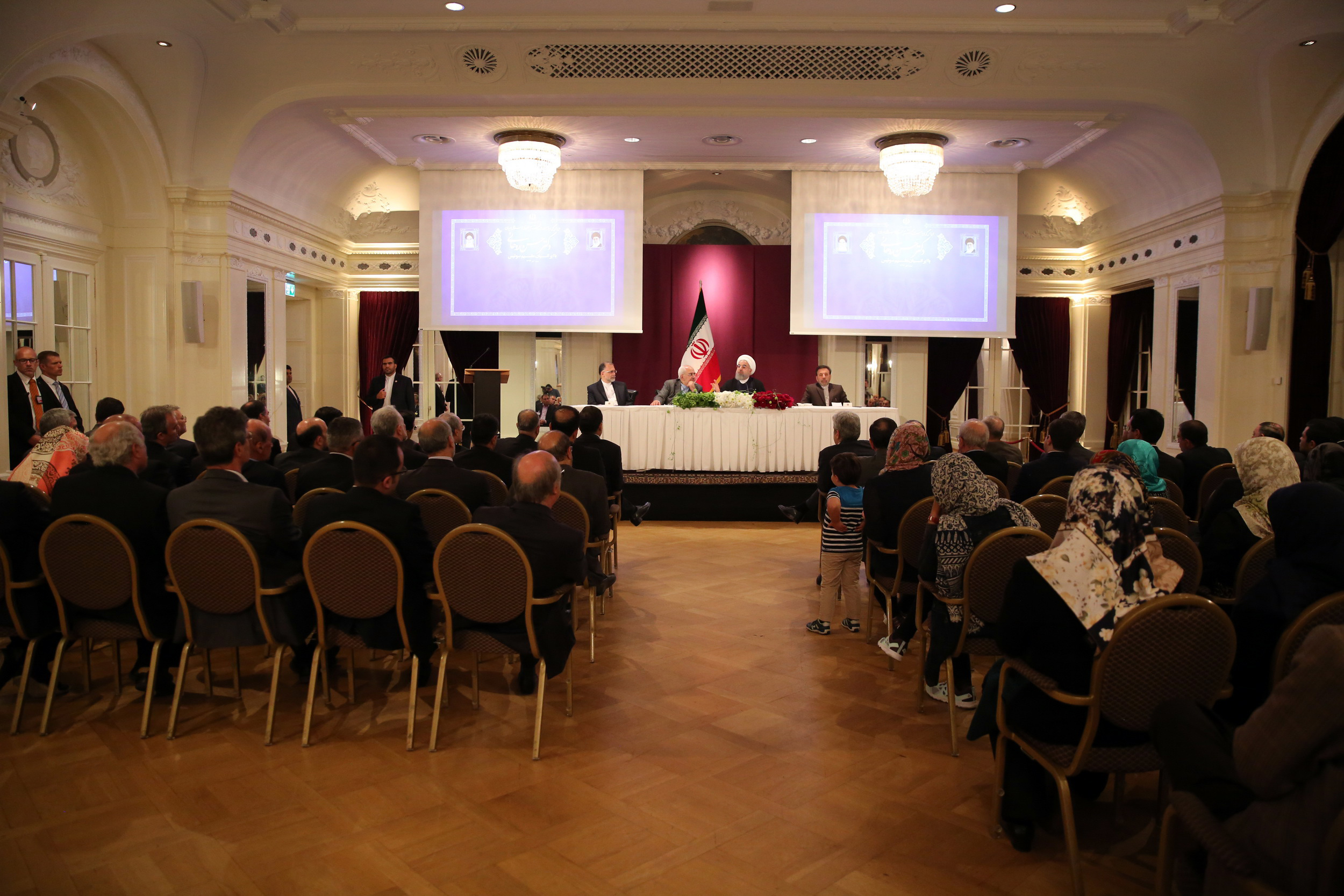 دکتر روحانی در بخش دیگری از سخنانش اظهار داشت: مقامات سوئیسی هم گفته اند که می دانیم حق با ایران است و حامی برجام و تداوم روابط اقتصادی با ایران هستیم و۴۰ شرکت اقتصادی سوئیس فردا با همکاران ایرانی خود جلسه دارند. در این مقطع که آمریکایی ها در مواجهه با ایران به جز چند کشور از طرف همه کشورهای دیگر جهان در زبان و عمل محکوم شده اند، امیدوارم بتوانیم با همکاری و همدلی با کمترین هزینه از این مسیر عبور کرده و شاهد ایرانی سرزنده تر، آبادتر و عزتمندتر باشیم.