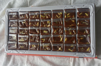 میزان کاکائو بستگی به خودتان دارد میتوانید کم یا زیاد کنید هرچقدر بیشتر باشد شکلات شما تیره تر می شود. ریس های حاضری را داخل کپسول های پلاستیکی می پیچند تا خشک نشوند.