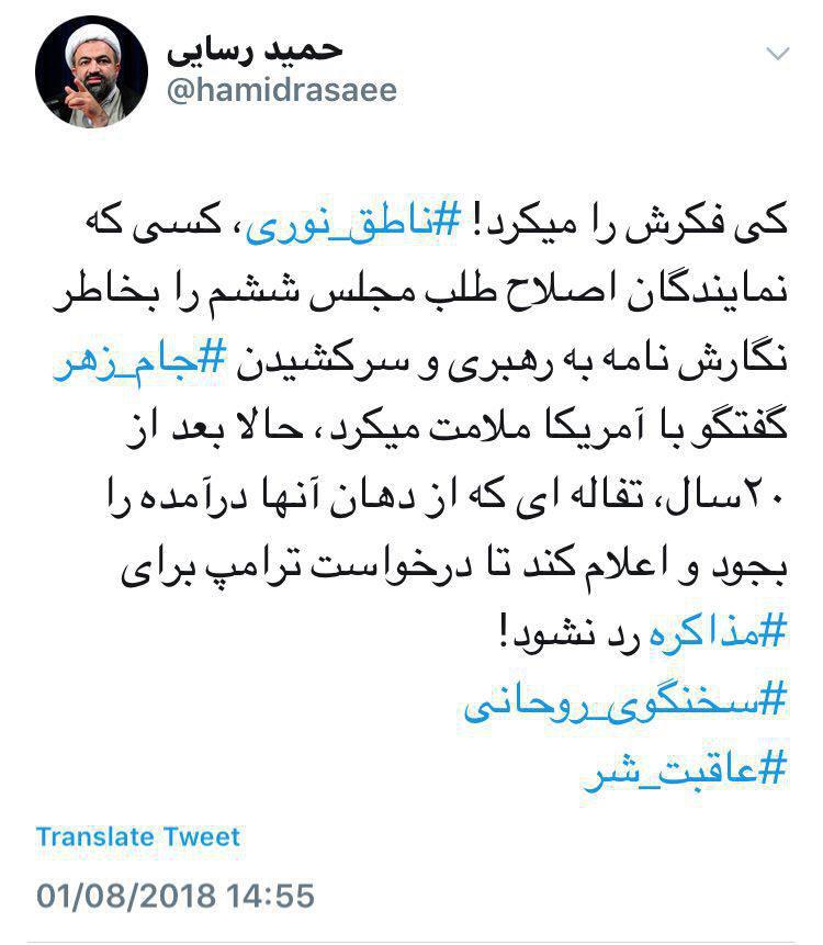 ناطق‌نوری گفته بود مذاکره با آمریکا رد نشود و به شورای‌عالی امنیت ملی سپرده شود / روزنامه ایران