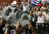 گروهی از مخالفان سرسخت رهبر کوبا با ساخت مجسمه سنگی او به تشییع نمادین پیکر او پرداختند.