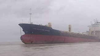 پلیس یانگون در بیانیهای گفته است؛ کشتی در ساحل یانگون به گِل نشسته است. این کشتی پرچم اندونزی را دارد.