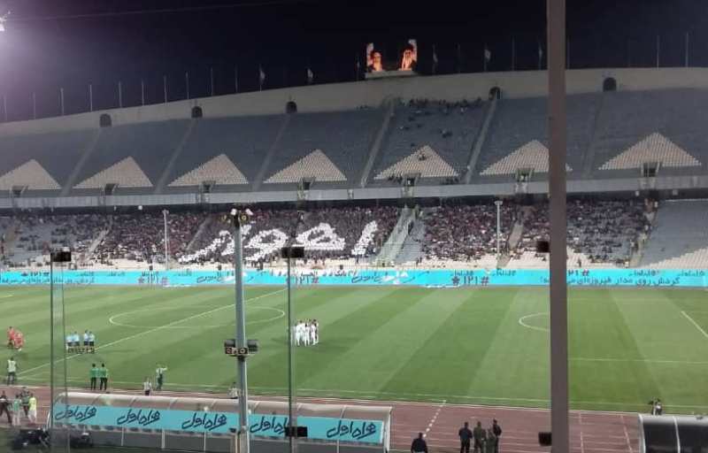 تماشاگران حاضر در ورزشگاه آزادی به شهدای حادثه تروریستی اهواز ادای احترام کردند.