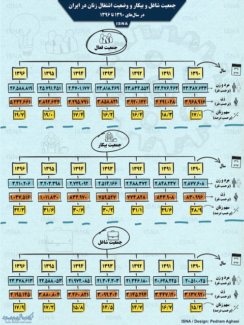 اینفوگرافی زیر قصد دارد تا به بررسی جمعیت شاغل و بیکار و وضعیت اشتغال زنان ایران بپردازد.