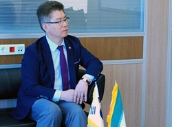 کنار میز کارش در سفارت کره جنوبی، دو پرچم گذاشته است. یکی پرچم ایران، دیگری پرچم جمهوری کره. «یو جانگ هیان» حدود 6 ماه است که به عنوان سفیر جمهوری کره به ایران آمده است. او قبلا مدیرکل خاورمیانه وزارت خارجه کره جنوبی بوده است. بنابراین با شناختی خوب از منطقه به ایران آمده است.
