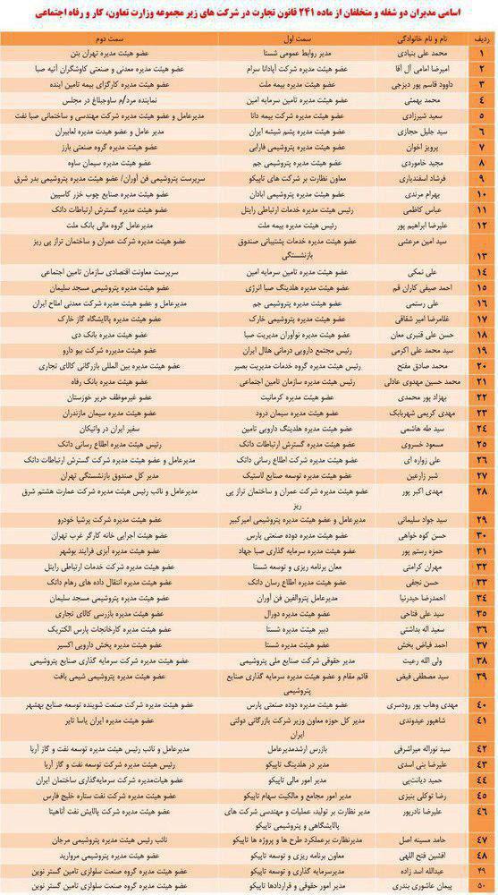 اسامی مدیران چندشغله شرکت‌های زیرمجموعه وزارت کار (جدول)