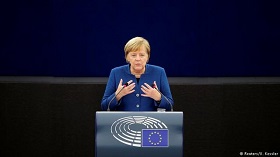 صدراعظم آلمان در پارلمان اروپا از ایدهی ایجاد یک ارتش اروپایی حمایت کرد. دونالد ترامپ با چنین اقدامی بهشدت مخالف است. مرکل همچنین از اروپائیان خواست، شمار بیشتری پناهجو بپذیرند.