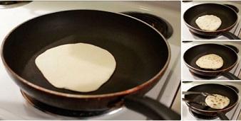 یک عدد تابه نچسب یا چدنی را روی اجاق گاز قرار دهید تا داغ داغ شود. سپس خمیر را به مدت ۱ الی ۲ دقیقه داخل آن تابه قرار دهید. روی خمیر حبابی شکل می شود. خمیر را برگردانید و ۱ الی ۲ دقیقه دیگر صبر کنید. وقتی روی هر دو طرف کمی متمایل به رنگ قهوه ای شد نان را از تابه بردارید.