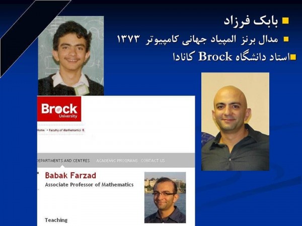 به گزارش روز جمعه ایرنا از مرکز ملی پرورش استعدادهای درخشان و دانش پژوهان جوان، بابک فرزاد دانش آموخته راهنمایی و دبیرستان شهید اژه ای اصفهان و از مدال آوران اولین دوره المپیاد کامپیوتر کشورمان در سال ١٣٧٣بود.