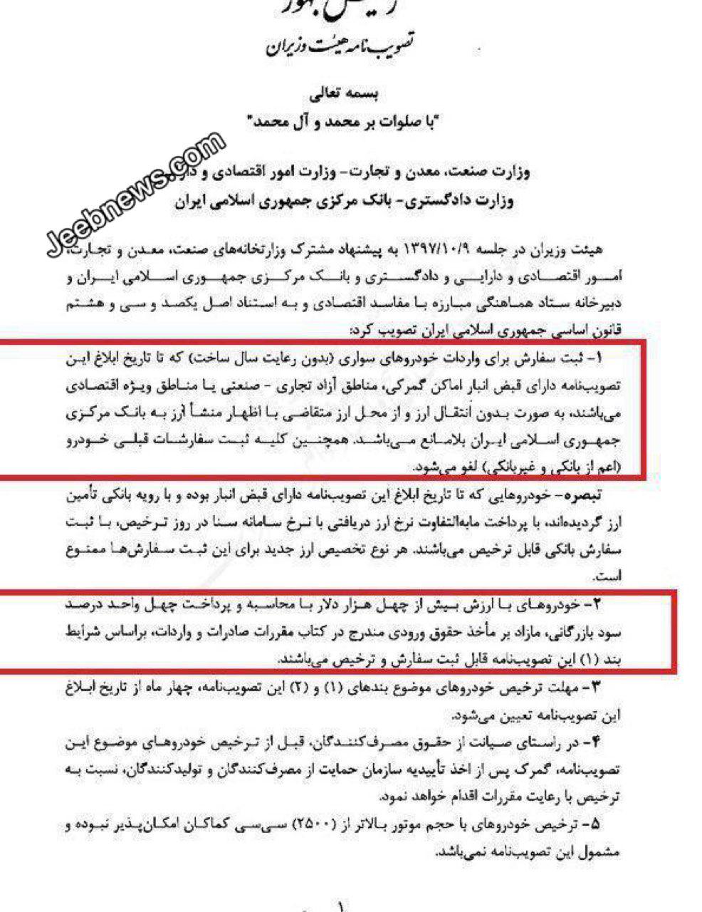 مصوبه دولت درخصوص واردات خودرو. ثبت سفارش خودرو بلامانع شد!
