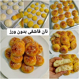 داخل سینی که کاغذ روغنی قرار دادید بچینید و روی آن زرده تخم مرغ و زعفران را مخلوط کرده و با برس روی آن بمالید در صورت تمایل روی آن کنجد بپاشید و در فر 190 درجه که از قبل گرم کردید یک ربع الی بیست دقیقه پخت کنید. بی نهایت خوشمزه و نرم و عالی است.
