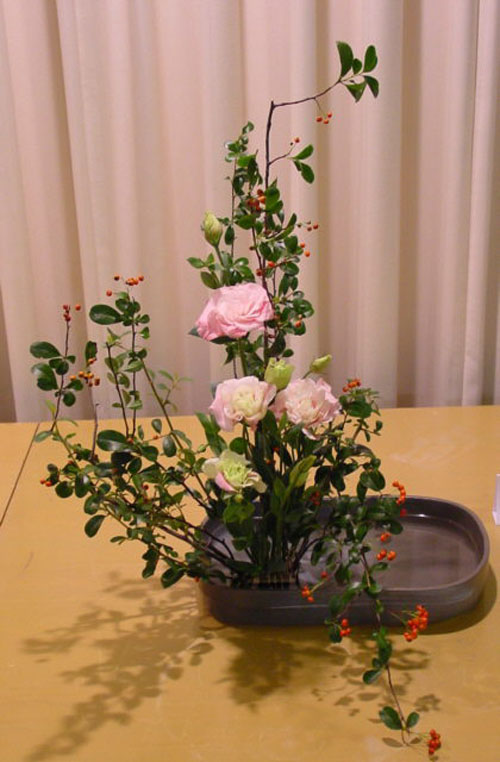 اکثر اتاقهای نشیمن در ژاپن شامل محراب کوچکی است که دیوارههای آن با شعارها و شعرهای زیبا و معنیدار پوشیده شده است و در طاقچه آن گلدان کوچکی باگلهای فصل قرار دارد که هر بامدادی بانوی خانه با خضوع و خشوع در مقابل محراب زانو میزند و پس از ادای احترام، با هنرمندی تمام گلهای آن را به مناسبت آن روز و یا حالات روحی خود، بنابر اصول گلآرایی ژاپنی جابجا میکند. در ژاپن گلآرایان با زبان لطیف گلها سخن میگویند و برای آنها هیچ چیز مانند گل تسکیندهنده نیست.