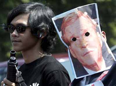 معترضان به سیاست های جنگ طلبانه آمریکا در اندونزی