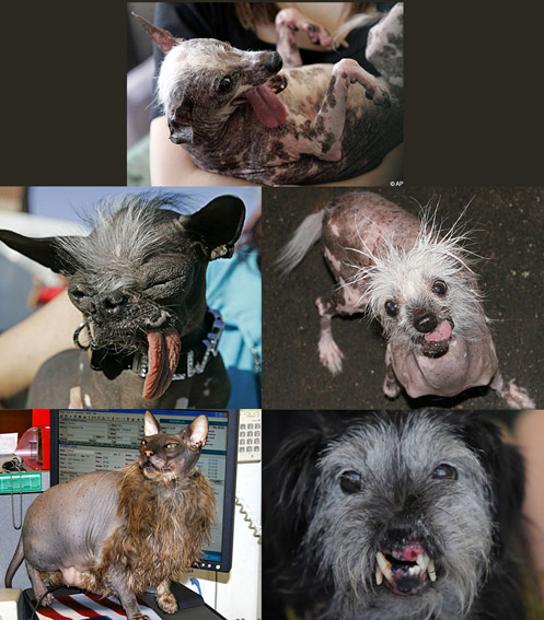 بر اساس يك نظرسنجي مشخص شد كه يك گربه و چهار سگ از زشتترين حيوانات در رده خود محسوب ميشوند.