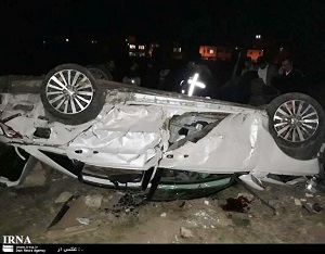 به گفته وی، این خودرو پس از برخورد با یک دستگاه پژو پارس از جاده خارج و واژگون شده بود.